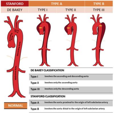 Figure 2. Classification of Aortic Dissection using Stanford and DeBakey systems. Source: ResearchGate