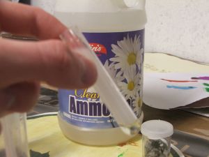 A test tube filled with ammonium chloride smoke made by reacting ammonia with hydrochloric acid.