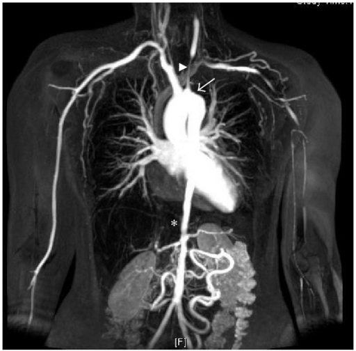 Revision as of 07:21, 20 February 2017 by Devin Smith (talk | contribs) (MRA of a patient with significant vascular narrowing from Takayasu Arteritis Takayasu arteritis: criteria for surgical intervention should not be ignored. Perera AH, Mason JC, Wolfe JH - Int J Vasc Med (2013) Open Access)