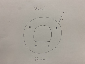 - 2 Ventral - palmar or plantar (4 and 8 o'clock positions)