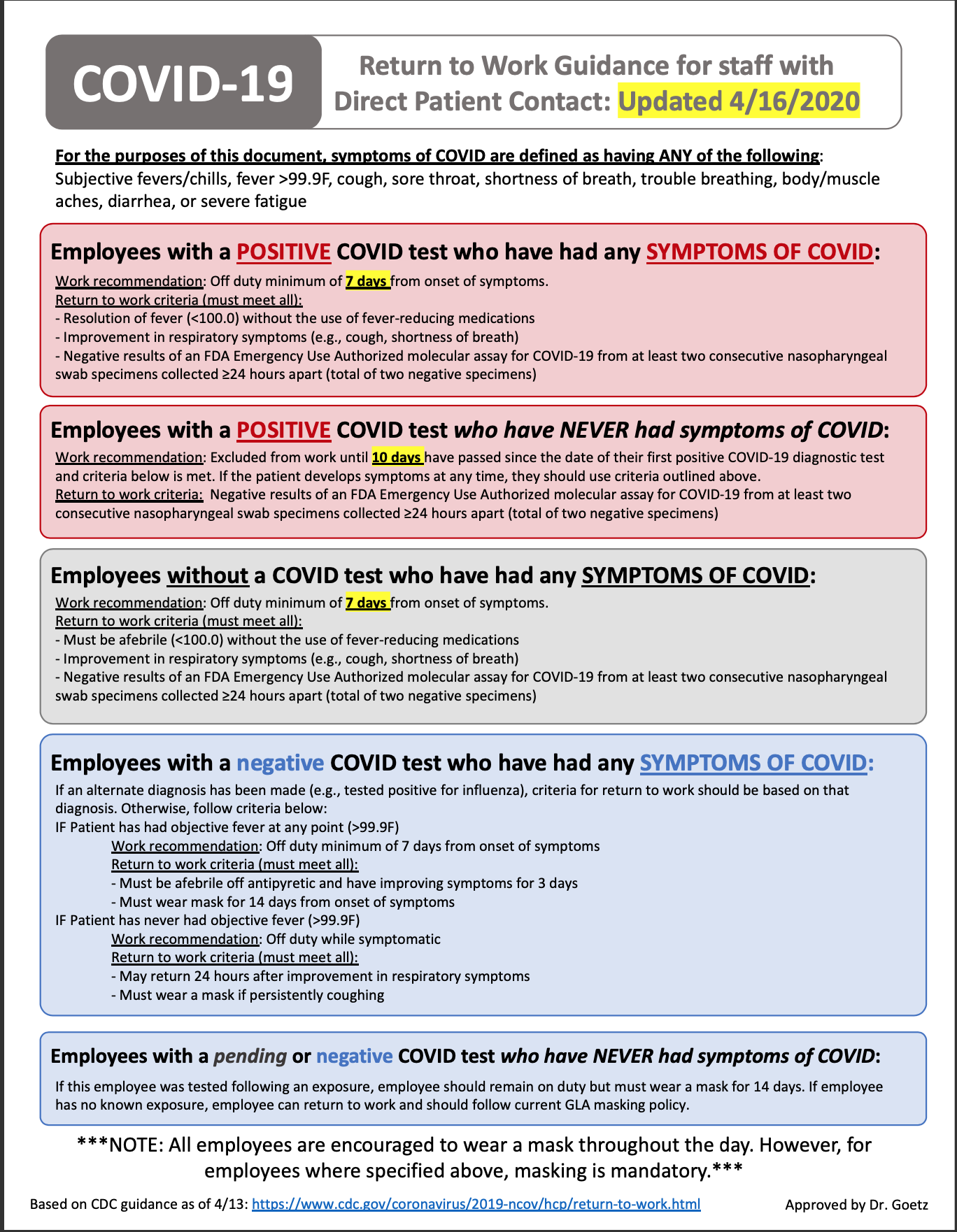 eturn to Work Guidance for Staff with Direct Patient Contact