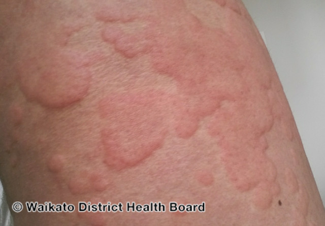 From DermNet NZ. https://dermnetnz.org/topics/acute-urticaria Original picture from Waikato District Health Board